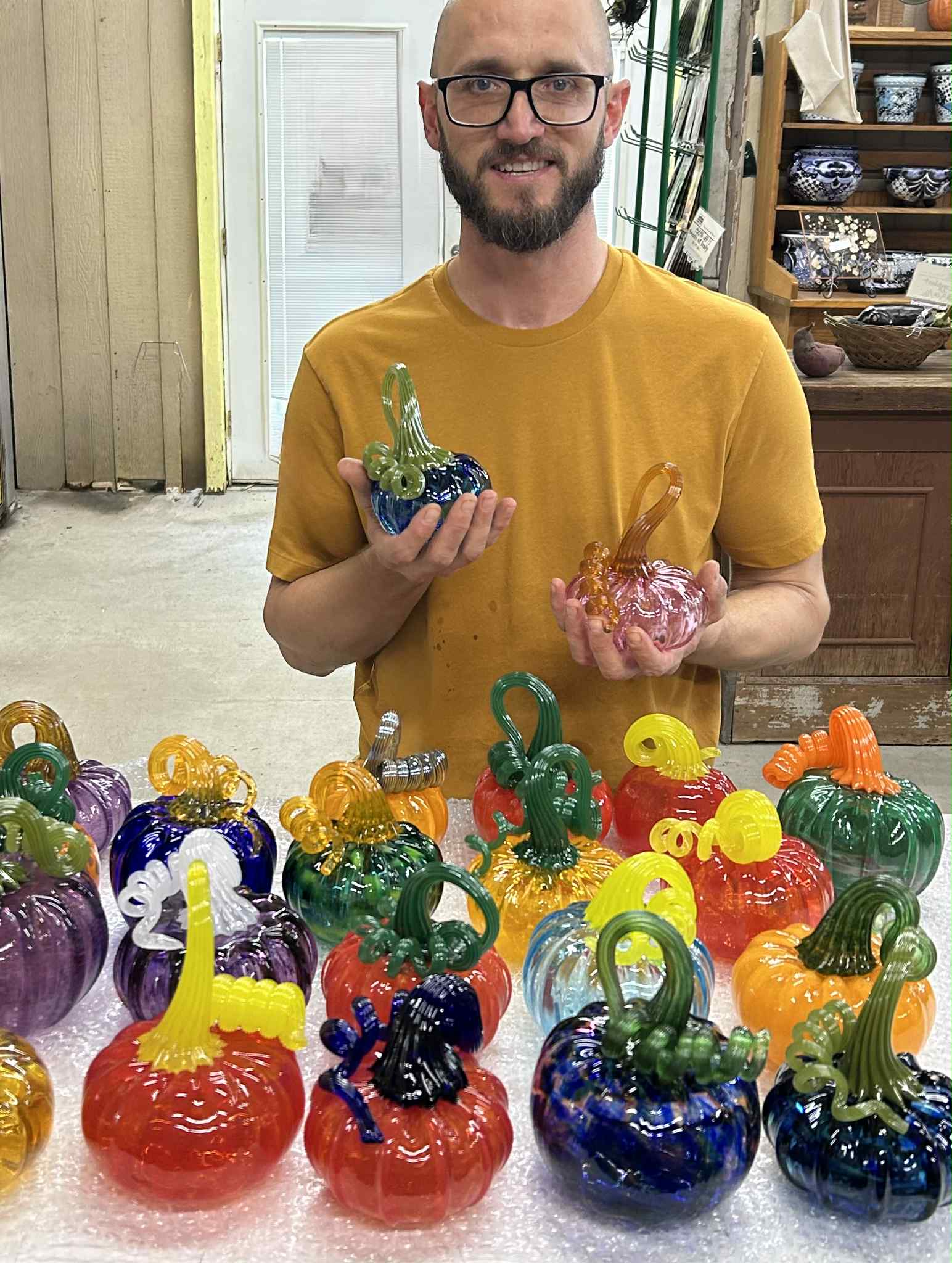 A lamp-worker turned glassblower, Justin embraces glass and learning as many new things as possible about the material.  Be sure to pick up some of his holiday ornaments at our Holiday Open House!